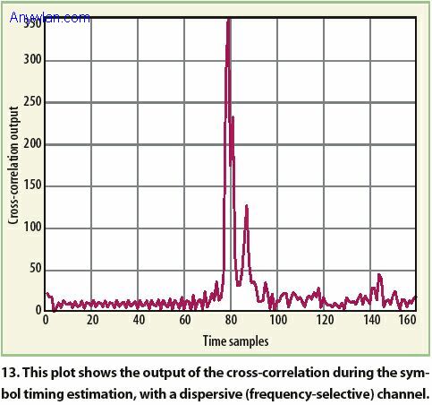 使用WiMAX高数据速率技术的无线应用将在今后几年内有很大发展。基于正交频分复用(OFDM)技术,WiMAX保持着对作为多媒体业务网络“最后一英里”一部分的宽带无线接入(BWA)的承诺。 本网站的技术文章《WiMAX收发机的工作原理和测试流程》中,对WiMAX物理层(PHY)和媒质接入控制(MAC)协议展开了讨论,这些是IEEE 802.16-2004标准要点以及WiMAX基带收发信机的基本特征。本文将讨论如何设计基带WiMAX接收机,并讨论它的各种测量算法。 《WiMAX收发机的工作原理和测试流程》讨论了WiMAX基带接收机模型的各种要素,包括同相/正交(I/Q)增益不匹配、正交误差。在基带发射机和信道模型中,I/Q初始偏移和I/Q增益不匹配被引入到时域信号: 当Iscale = Qscale时,I/Q不匹配为零。当Iof和Qof均为零时,没有I/Q偏移。图7给出了接收符号星座图中IQ增益不匹配的情形。 正交倾斜误差显示I和Q信号间的正交误差。理想情况下,I和Q信道应该精确正交(相隔90度),当正交性不理想时(小于或大于90度或±90度),就可观察到正交误差。在基带信号模型中,Q偏移对时域信号的影响为: 其中,α是正交误差。 当α等于0度时,ym(n)等于Xm(n)(没有正交误差)。图8给出了接收符号星座图中正交误差的影响。 接收信号可建模(I/Q完全一致情况下)为: 其中, Φmcommom是由剩余频偏引起(进行频偏补偿后)公共相位误差以及先前描述的其它可能误差源; Φm(k)carrier dep是依赖载波的相位旋转,主要由采样定时偏移引起; Γm是公共增益偏移,可以由放大器增益变化造成。 所有其它噪声或者折合成AWGN项zm(k)(如果噪声是加性的),或者折合成信道频率响应(如果噪声是乘性的)。 图9给出了所提出WiMAX测试接收机的框图。该接收机设计用于测试和测量,因此同用于WiMAX产品的实际接收机算法有一些区别。还要注意到的是这种接收机为数字基带接收机,处理由任意接收机或者矢量信号分析仪的模拟前端给出的I/Q数据。接收信号还要经过信道模拟器以加入前面提到的所需的损害(用于测试目的)。这样,接收信号就代表了包括因实际硬件(在发射机和接收机前端)造成的可能损害在内的I/Q样本以及包括在信道模拟器内的内部损害。 发射机可以是传输标准WiMAX信号的任何信号源,它可以是一台矢量信号发射器(VSG)或者仿真器。笔者用MATLAB软件开发了一种基于标准的数字基带发射机用于测试单机模式下的WiMAX性能。仿真的发射机具有类似信道编码、产生所有可能调制(BPSK、QPSK、16QAM、64QAM)、编码选择(turbo码除外)、所有可能循环前导选择、上下行图发生成、所有可能采样率以及带宽选择、灵活的突发符号数量选择以及生成随机与标准测试数据等功能。不过,正如前面所述,没有什么必要去使用发射机仿真器,因为主要目的是用所提出接收机去测试第三方发射机产品。然而,仍然值得使用仿真发射机产生的合成数据用于调试和交叉检查。不管用哪种发射机,只要是基于IEEE 802.16-2004标准的发射机,所提议接收机就可以设计来合理工作。全部功能模块对于测试和测量发射机质量都是必要的,这些功能模块如图9所示。 ###NextPage### 用MATLAB模拟的基带接收机可进行许多操作:寻找RF突发和突发的分组界限、估计和校正粗频偏、估计与进行粗和细微符号时间同步;估计分组(RF 突发)结束位置以及准确有用的分组信息;实现精细频偏估计和残留频偏校正;去除CP和转换时域信号为频域符号;估计信道频率响应(CFR)和纠正因公共相位偏移以及载波依赖性相位偏移带来的符号旋转;利用CFR进行频域均衡;检测符号和得到为信道译码器所用的软符号值;应用去交织器/解码器/去随机化器;对FCH域解码和CRC校验。在随后部分将对每个模块进行简要解释。注意到其中一些模块是类似于去交织/解码/去随机性、FFT、CP消除等的标准信号处理模块,关于这些模块的信息随处可得,这里就不再做进一步解释。 注意到在WiMAX(类似其它无线通信系统)中,训练序列被插入在数据符号之内以帮助同步和信道估计。下行链路子帧始于两个在用户站用于同步和信道估计的OFDM符号,这两个符号一起表示了下行链路(DL)子帧的前导头并被叫做“长前导”。上行链路子帧始于一个OFDM符号,该符号被基站用来与独立的SS达到同步。该单个上行链路符号被叫做“短前导”。 图10给出了长短前导的结构。长前导的第一个符号由每个第四路载波(200路载波中共有50路)组成,这样,时域信号就有四个重复部分。虽然长前导的第一个符号对粗信号采集有用,它对于精确的信道测量和校正还不够,因此在下行链路子帧中,第一个符号之后紧接着另一个同样长度的符号,该符号包括交替的运行载波。在时域中,第二个符号有两个重复部分。 运用分组检测技术来确定是否有有用分组存在(并用来发现分组的起始点)。训练序列的重复性结构被用于这种搜索,搜索使用了两个滑动窗。第一个窗用来计算接收信号及其延迟信号之间的自相关。延迟量等于重复序列的长度,这取决于是下行链路还是上行链路。第二个窗口被用来获得接收信号的功率以便对判决统计量进行归一化,这样判决变量就不再依赖于瞬时功率。两个窗口的长度为相同值M,第一个和第二个窗口值可表示为: 判决变量为: 这里,y(n)是接收信号,M是窗口长度。 如果d(n)的幅度超过了门限,就可以假定在d(n)超过门限处的起始点有一个输入分组。门限选择是设计关键,需要