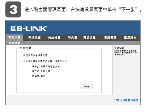 BI-WR100N无线路由器采用宝蓝精致色调,延续以前BLINK的150M无线路由器的传统外观,尽显科技魅力。外置一根5dBi高增益全向天线,传输速率高达150Mbps,同时支持有线宽带和无线宽带两种网络环境! BI-WR100N无线路由器不仅外观靓丽,还拥有卓越的无线性能,采用11N无线技术,高智能5dBi全向天线设计,信号强,插U内数距离更远,无线传输速率高达150Mbps,可以满足更多的无线客户端接入,在无线客户端数量相同时能够为每个客户端提供更高的无线带宽,使在线影视、网络游戏、视频聊天等高等带宽要求的网络应用更加流畅,也使局域网内数据传输更加高效!使用者完全不必担心信号的问题! BI-WR100N无线路由器还拥有丰富的实用功能,支持网关、AP客户端、WDS无线中继,可以实现两台或多台无线路由器之间无线桥接,轻松扩展无线覆盖范围。还支持SSID隐藏,无线MAC地址过滤,64/128位WEP加密及WPA-PSK/WPA2-PSK,WPA/WPA2安全机制,保证无线网络不被侵犯和盗用! BI-WR100N无线路的WPS快速安全设置功能,配合具有WPS功能的无线网卡使用时,只需分别按下路由器和网卡的WPS快速安全按钮,或在电脑上输入路由器PIN码,即可完成比传统WEP加密更安全的WPA2级别的无线安全连接,不需要再记忆复杂的密码! BL-WR100N无线路由器的设置方法也很简单,不需要专业性知识,几步就能轻松搞定,那么设置的详细步骤是什么呢? 1.打开网页浏览器。 2.在浏览器地址栏中输入192.168.16.1,然后按回车进入。输入用户名和密码,默认均为admin,如图所示,然后点击确定。 3.进入路由器管理页面,在快速设置页面中单击"下一步"。 4.根据自己的网络环境,选择上网方式,然后设置电脑的上网参数,单击"下一步。"如图: 1.5.设置无线参数,单击"下一步"。 6.最后,单击重启,完成设置。注意,系统重启的时间约需30秒,重启后,您就可以在路由器的"系统管理"-"状态"页面中,查看LAN和WAN接口。 BL-WR100N无线路由器的设置是不是很简单呢?