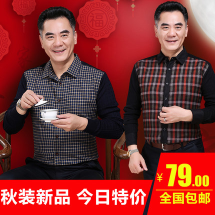 中年男士品牌秋装爸爸衬衫