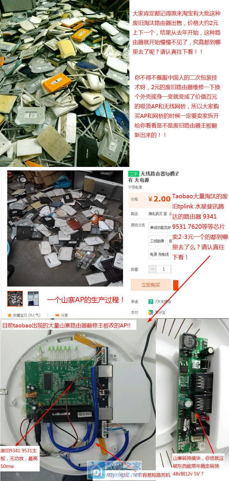 [无线AP/网桥] 咸鱼淘宝山寨网桥吸顶AP生产过程大揭密!2元的废旧路由器都到哪里去了 ?行业大曝光 |