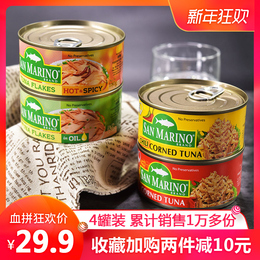 圣马利奥进口腌制油浸吞拿鱼金枪鱼罐头特价包邮海鲜即食下饭4罐 券5元 【券后24.9元】